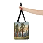 Elevate your travel essentials with our Sequoia National Park All Over Print Tote Bag. This eco-friendly masterpiece combines style and sustainability, boasting an eye-catching design that celebrates the majestic beauty of Sequoia. Perfect for adventures near and far, it's spacious enough for all your necessities. With durable handles and a lightweight feel, this tote is your ideal companion for every journey. Carry a piece of nature wherever you go! Add functional perks to an already great design and you get a staple for everyday use. With its interior zippered pocket for added safety, and the adjustable straps for extra comfort, this tote bag has it all. 100% Spun Polyester Available in two sizes: 13''x13'' and 18x18'' Adjustable strap Black interior lining and inner pocket Assembled in the USA from globally sourced parts 13" × 13'' 18" × 18'' Height, in 13.00 18.00 Length, in 13.00 18.00 Width, in 3.00 3.00 Handle length, in 28.74 28.74 Handle width, in 1.00 1.00