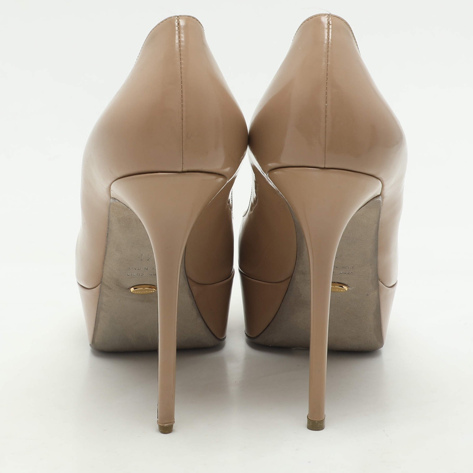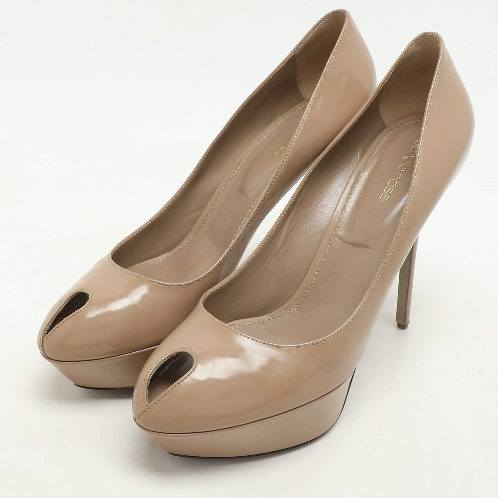 Sergio Rossi Beige Patent Leather Godiva Pointed Toe Slingback Pumps Size 40