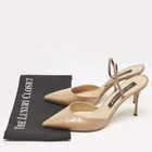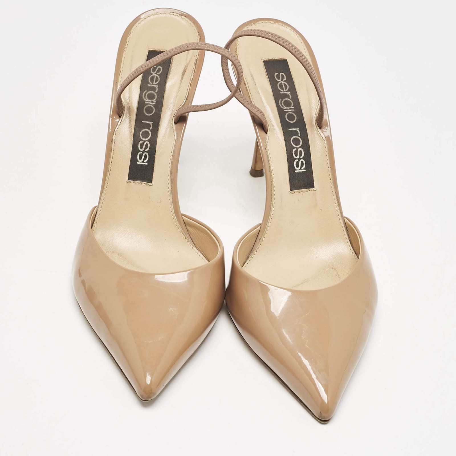 Our eBay Store About Us Contact Us Add to Favorite Sellers Sergio Rossi Beige Patent Leather Godiva Pointed Toe Slingback Pumps Size 40 Sergio Rossi channels timeless elegance in these beige patent leather Godiva slingback pumps. With a sleek pointed toe and subtle shine, they’re ideal for polished workwear or chic evenings. Style with tailored suits or pencil skirts for refined sophistication. Product Details Brand Sergio Rossi Color Beige Includes The Luxury Closet Packaging Outsole Length 25 cm Outsole Width 9 cm Size 40 Certified by The Luxury Closet This item has gone through a detailed authentication process overseen by our experts. We offer a lifetime guarantee of authenticity on all our items. How We Check The in-house team of experts at The Luxury Closet is highly trained to verify the authenticity and the condition of the luxury products. They ensure that only 100% authentic items are put on sale.The evaluation process is unique with its own mix of assessment criteria and differs according to the category. Each item is evaluated based on the following combination of hallmarks, hardware, stitching, symmetry, material, craftsmanship, stamping, codes, hologram stickers, and packaging. Our authenticators also check if the items have been modified or amended (e.g., aftermarket diamonds, replaced batteries, repaired bags, etc.) International Buyers Import duties, taxes and charges are not included in the item price. These charges are the buyers responsibility. Please check with your country’s customs office to determine what these additional cost will be prior to buying.