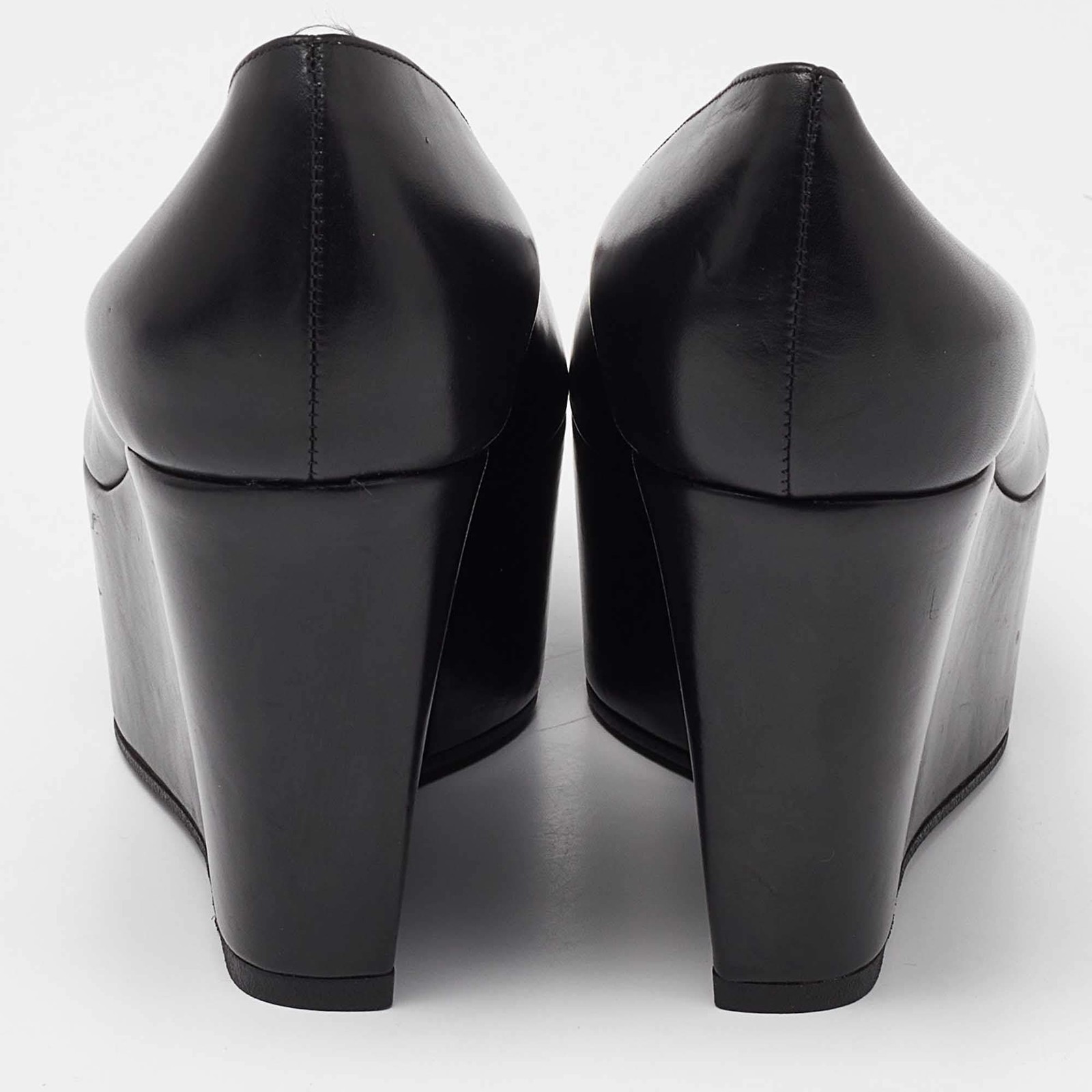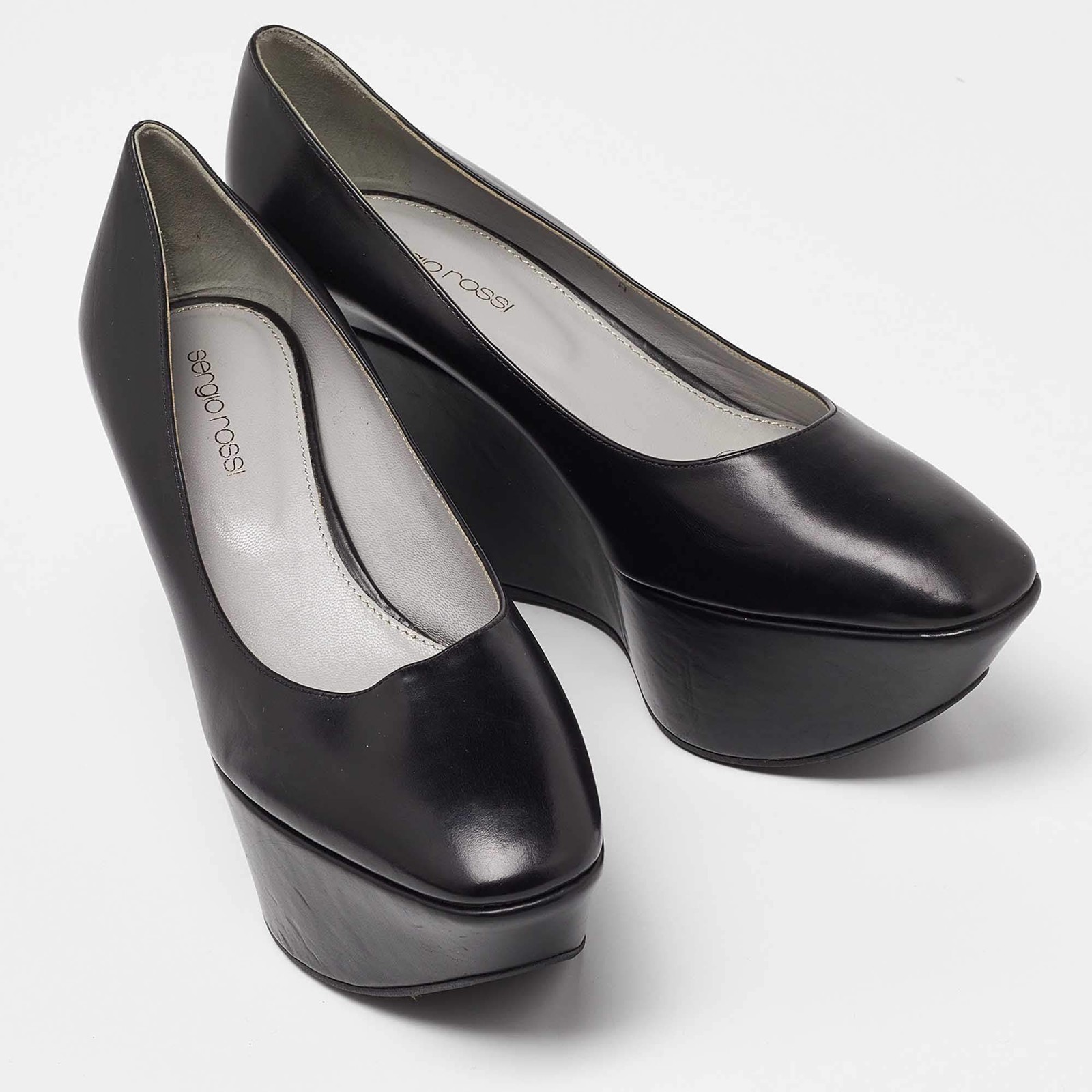 Our eBay Store About Us Contact Us Add to Favorite Sellers Sergio Rossi Black Leather Wedge Platform Pumps Size 38 Make a chic style statement with these designer pumps. They showcase sturdy heels and durable soles, perfect for your fashionable outings! Product Details Brand Sergio Rossi Color Black Includes The Luxury Closet Packaging Outsole Length 26 cm Outsole Width 6.5 cm Size 38 Certified by The Luxury Closet This item has gone through a detailed authentication process overseen by our experts. We offer a lifetime guarantee of authenticity on all our items. How We Check The in-house team of experts at The Luxury Closet is highly trained to verify the authenticity and the condition of the luxury products. They ensure that only 100% authentic items are put on sale.The evaluation process is unique with its own mix of assessment criteria and differs according to the category. Each item is evaluated based on the following combination of hallmarks, hardware, stitching, symmetry, material, craftsmanship, stamping, codes, hologram stickers, and packaging. Our authenticators also check if the items have been modified or amended (e.g., aftermarket diamonds, replaced batteries, repaired bags, etc.) International Buyers Import duties, taxes and charges are not included in the item price. These charges are the buyers responsibility. Please check with your country’s customs office to determine what these additional cost will be prior to buying.