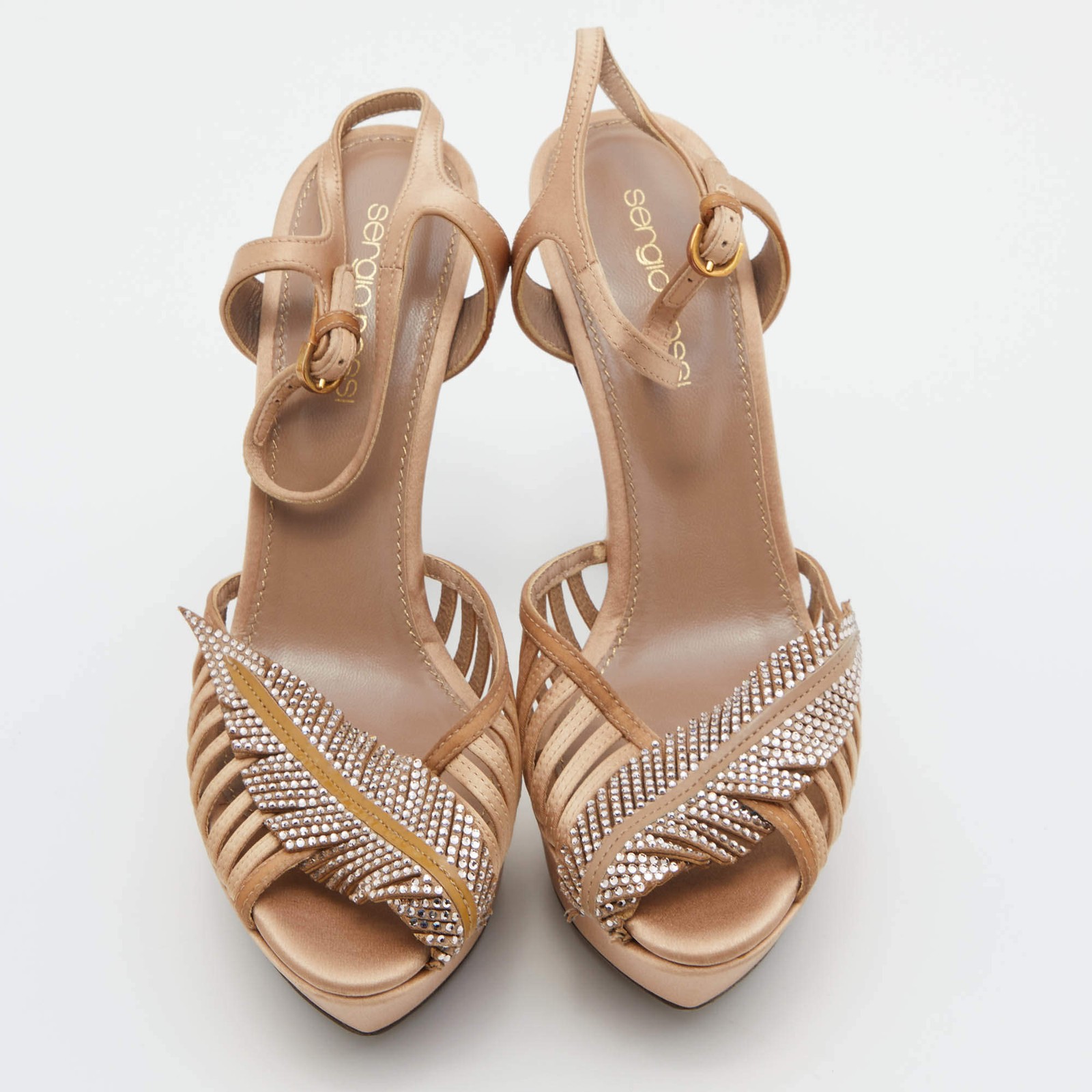 Our eBay Store About Us Contact Us Add to Favorite Sellers Sergio Rossi Light Brown Satin Crystal Embellished Ankle Strap Sandals Size 355 These sandals will frame your feet in an elegant manner. Crafted from quality materials, they display a classy design and comfortable insoles. Product Details Brand Sergio Rossi Color Brown Includes Original Dustbag Size 35.5 Outsole Length 20 cm Outsole Width 6.5 cm Certified by The Luxury Closet This item has gone through a detailed authentication process overseen by our experts. We offer a lifetime guarantee of authenticity on all our items. How We Check The in-house team of experts at The Luxury Closet is highly trained to verify the authenticity and the condition of the luxury products. They ensure that only 100% authentic items are put on sale.The evaluation process is unique with its own mix of assessment criteria and differs according to the category. Each item is evaluated based on the following combination of hallmarks, hardware, stitching, symmetry, material, craftsmanship, stamping, codes, hologram stickers, and packaging. Our authenticators also check if the items have been modified or amended (e.g., aftermarket diamonds, replaced batteries, repaired bags, etc.) International Buyers Import duties, taxes and charges are not included in the item price. These charges are the buyers responsibility. Please check with your country’s customs office to determine what these additional cost will be prior to buying.