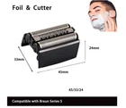 Series 5 Braun 52B Electric Shaver Replacement Head Foil &Cassette Shaving Black 52B Shaver Head: This replacement head compatible with all series 5 shavers : 5020, 5020s, 5030, 5030s, 5040, 5040s, 5050, 5050cc, 5070, 5070cc, 5090, 5090cc, 5748, 5749, 5147s, 5140, 5140s, 5768, 5769, 5145, 5145s, 5160s, 5190cc, 5195cc, 5197cc, and so on. Experience the pinnacle of precision and comfort with the Braun Series 5 52B Replacement Head. Tailor-made for Braun's esteemed Series 5 electric shavers, this replacement head reinvigorates your grooming routine, ensuring a smooth, irritation-free shave every morning. The 52B Replacement Head boasts Braun's pioneering flexing technology, allowing the shaving elements to adapt seamlessly to the contours of your face and neck. This ensures an even, close shave with minimal pressure, reducing the risk of nicks and razor burn. Gives You a Comfortable Dry or Refreshing Wet Shave, Adapt Your Shave Routine to Your Needs. You can choose to get a convenient dry shave or a more refreshing wet shave with gel or foam - even in the shower. Super convenient to clean, rinse under running water for fast cleaning. ✔ SUITABLE SERIES:Compatible with all Series 5 electric shavers,such as model 3 5020, 5020s, 5030, 5030s, 5040, 5040s, 5050, 5050cc, 5070, 5070cc, 5090... ✔ CLOSE & CLEAN:Flexible shaver head to capture even more hair in one stroke. ✔ EFFICIENT & GENTLE: The replacement head get's your shaver back to 100% performance and a closer shave. ✔ PEAK PERFORMANCE: to maintain your best shave, we recommend replacing the shaver head every 18 months. ✔ SIMPLE REPLACEMENT:Easily attach your new shaver head - just by clicking it on. Feature: Easy to install: easy installation without tools. Clean the razor before installation Small investment, peak performance Recommends changing your shaver’s foil & cutter block every 18 months to maintain your shaver’s maximum performance. For a perfect shave every day.