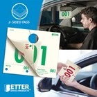 Complete auto service dispatch management hang tags, 6" x 7"; 3-part double-sided tags that are printed in RED on one side and GREEN on the opposite side using color coding as a visual aid to decipher whether cars are in-service or ready for pick up. Perforated tags have tear-away Key Tag and Claim Check, each with ample space to write in all pertinent auto and customer information per printed -outs. Box contains 10 pads of 100 tags for easy distribution. 1,000 NUMBERED TAGS - Consecutively numbered 6" x 7" tags from 000-999 (10 pads of 100 tags per box for easy distribution) SERVICE DISPATCH MANAGEMENT - 3-Part perforated sheets with large hanging mirror tag, key tag, and claim check, all parts stamped with the same # DOUBLE-SIDED - Red text on one side and green on the other side CUSTOMIZE - Key Tag and Claim Check tear-offs have lines to write in important auto and customer ID info. EASILY READABLE - Large numbers in vibrant colors to increase visibility from a distance