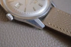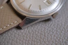 It was overhauled in December 2024. Judging from the serial number, I think it was manufactured in the 1970s. As you can see in the photo, the cal. 8541B is a very clean movement that suggests it has undergone regular maintenance. The 36mm wide stainless steel case has been polished and is in good condition for its age. The dial has a glossy sunburst finish and is an original curved Bombay dial. There are pearl dots and applied bullet indexes, and no noticeable damage. The strap will be made of cassis calf leather. We will provide a two-year warranty after the sale, and the next overhaul will be free of charge. In total, you can use it with peace of mind for four years.
