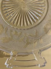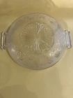Serving Dish 9 inch Clear Glass Etched Flowers 2 Handles. Condition is Used. Shipped with USPS Ground Advantage.