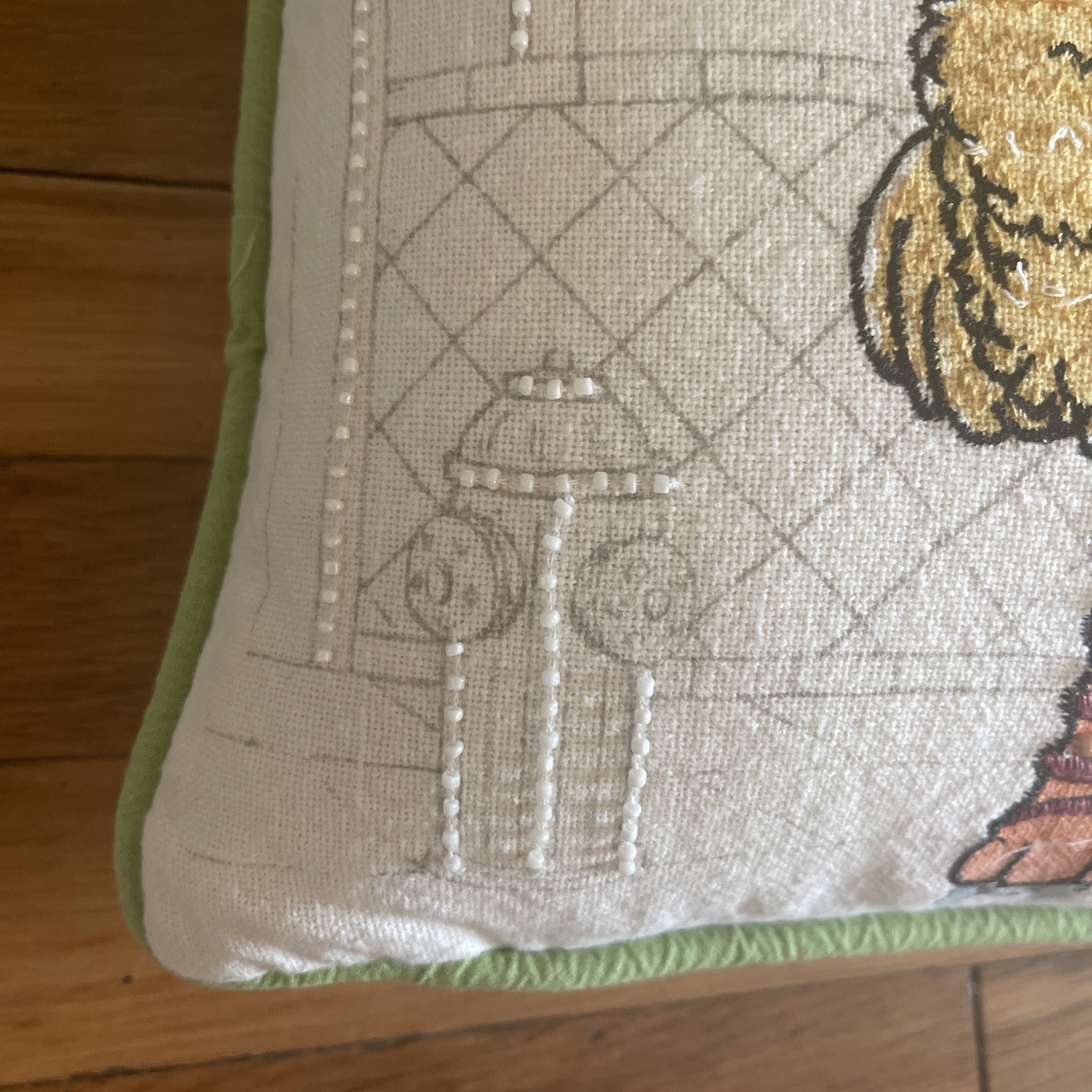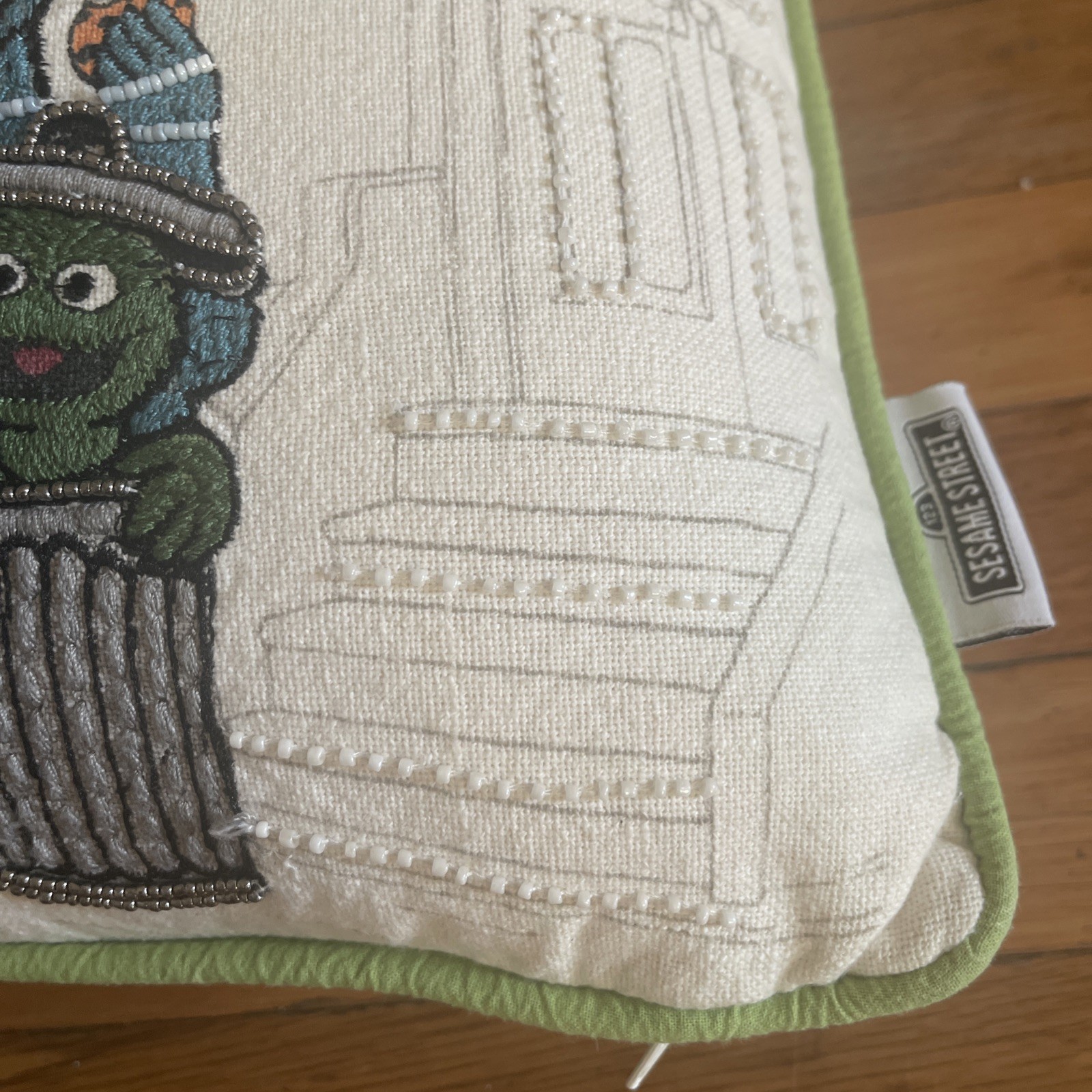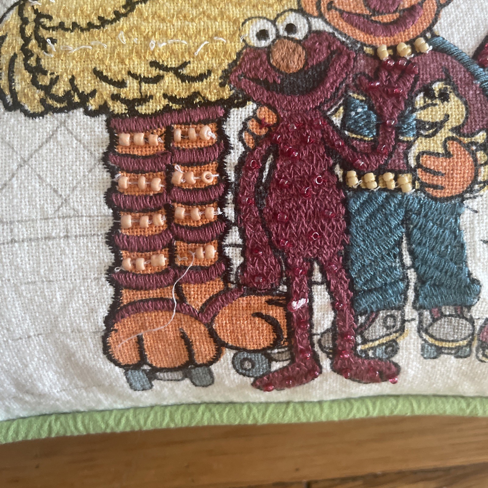 See pictures. Some areas of beads are missing This Sesame Street throw pillow features a beaded front with striped back design, showcasing beloved characters like Cookie Monster, Elmo, and Bert. The 12x18 size makes it perfect for decorating any room in the house, including the bedroom, living room, or office. Made of 100% polyester material, this multicolored pillow is a fun and playful addition to any space, bringing a touch of nostalgia and charm with its Sesame Street theme. The zipper closure ensures easy maintenance, making it both stylish and practical for adding a pop of personality to your decor.