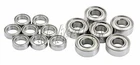 Complete Bearings Set Tamiya TG10 Set of 14 Bearings Complete set Ball Bearings for Tamiya TG10, Set Contains 14 Bearings. each bearing has 2 metal shields to protect the bearing from dust or any possible contamination, also bearings are pre-lubricated with grease. Item: Complete Bearings Set Model: Tamiya TG10 Closures: 2 Metal Shields Pack#187 Quantity: 14 Bearings Pack#187