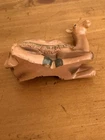 Set Of 2 Camels Laying Down Brown Green fringe Blanket Plastic Resin Replacement Good condition refer to pictures Seems to be made of hard plastic/poly resin possibly