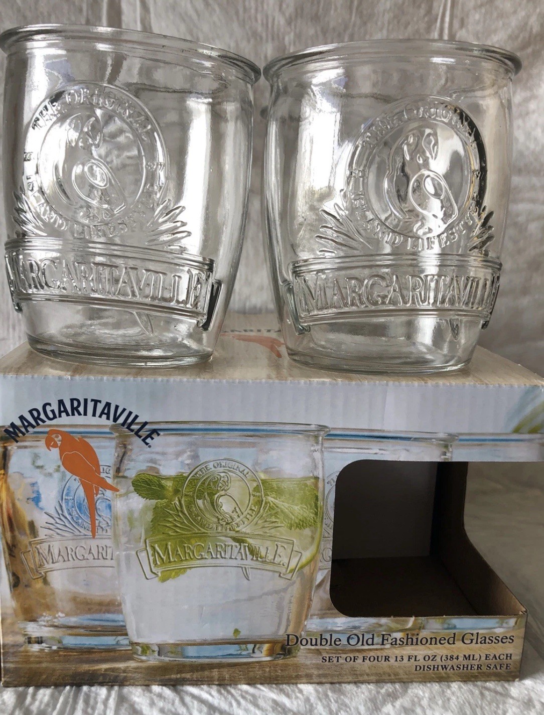 This set of four Margaritaville double old fashion glasses is perfect for any summer occasion. Each glass has a capacity of 13 FL OZ and stands at 4 inches tall with a width of 3.5 inches. The glasses are made of clear, durable glass material and feature break/chip resistant and decorated features. These glasses are dishwasher safe and perfect for adults. The set includes four double old fashion glasses, perfect for serving four drinks at a time. These glasses are a great addition to any home bar or kitchen.