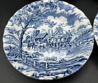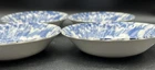 Elevate your dessert presentation with this set of four Myott Staffordshire England Royal Mail Blue Berry Dessert Bowls. The bowls feature a classic blue and white pattern with a glossy finish that adds a touch of elegance to any table setting. Made of high-quality porcelain and stoneware, these bowls are stackable, dishwasher safe, and decorative, making them perfect for all occasions. The round bowls have a diameter of 5.5 inches and are designed to hold your favorite desserts. The set includes four bowls, each adorned with the British Horses theme and the Myott brand name. These original, vintage bowls are produced in the United Kingdom using traditional pottery techniques and are printed with a backstamp. Add a touch of British style to your dessert course with this exquisite set of bowls. Crazing.