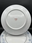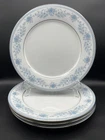 This set of four contemporary fine china porcelain dinner plates from Noritake's Blue Hill collection is a beautiful addition to any dining experience. The plates measure 10.5 inches in diameter and feature a stunning floral pattern in shades of blue. They are perfect for all occasions, whether you are hosting a formal dinner party or a casual family meal. Crafted in China with precision and care, these plates bear the Noritake brand name and are an original production line. The set includes both dinner plates and regular plates, making it a versatile option for any table setting. The backstamp is printed and the plates are not antique or vintage. They are perfect for those who appreciate contemporary style and design. Like new condition.