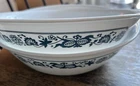 The product is a set of 2 Corelle 8 1/2" Blue Onion Old Town round vegetable serving bowls. These bowls are made of glass with a vibrant blue color and feature a classic design. The set includes 2 serving bowls that are perfect for serving vegetables or other dishes during meals. The bowls are in very good condition, making them a great addition to any dining table for both everyday use and special occasions. Like new condition