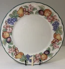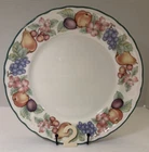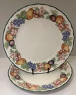 Both are in excellent condition. There are no chips, cracks, crazing, breaks or stains We ship with TLC Fast shipping. This set of two EPOCH Collection Market Day #E801 serving platters features beautiful cherry blossom designs. The platters are made of ceramic and have a round shape with a diameter of 12 inches. The white base is accented with green trim and fruit and floral decorations, giving the platters a vintage look. The backstamp is printed and the set includes two platters. Perfect for serving dishes at a dinner party or adding a touch of elegance to your table setting.