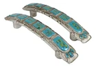 • Each of these Rustic Southwestern door pulls measures 1.25" High, 9" Long and 2" Deep approximately. Each piece weighs about 9 ounces. The distance between the 2 screw-holes is 6.5" Wide. • Each of these Rustic Southwestern door pulls is made of designer composite resin, hand painted and polished individually. The hardened resin is reinforced with metal hardware at the screw hole. • Western decor is all about spunk and spirit, bringing together the desert beauty of the southwest and all its inhabitants with rugged cowboy charm and rustic good looks. These cabinet door pulls feature silver ropes arranged in a linear pattern with a faux turquoise gemstone in the center. • This listing is for a pack of 2 bar pulls which will be blister packed in one package. Ebros Set Of 4 Rustic Western Silver Turquoise Boho Drawer Cabinet Door Bar Pulls Video will open in a new window Using the mobile app? Copy this link into your browser: