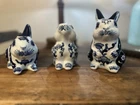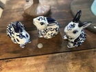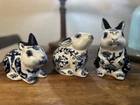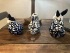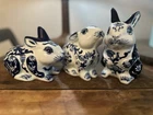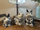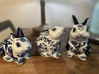 Add some vintage charm to your Easter decor with this set of 3 blue and white ceramic bunny figurines. These figurines are designed in a Chinese style and feature a glossy finish. They are perfect for all occasions and will make great additions to your collectibles and decorative collectibles. Crafted in China between 2000-2009, these figurines are made of high-quality ceramic material and are ideal for adults who love to collect sculptures and figurines. The rabbit subject adds a touch of whimsy to your decor and the blue color complements any room. Get this unique set today and bring some vintage charm to your home. Vintage estate fund in excellent condition