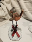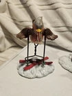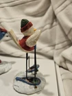 This fun skiing trio would be great on any shelf. The duck does have some added glue to the ski poles the one is loose. Please see pictures.
