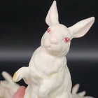 Why settle for one bunny when you can have three judgmental rabbit overlords staring at you with red eyes? Perfectly unsettling decor. • Made from ceramic with hand-painted details • Includes markings: H-7143, H880, and Lefton Japan sticker • Tallest bunny measures 4.25" • Vintage collectible set • Slight wear on bases In very good used condition. One rabbit has a very small chip on his ear. No other issues found. See photos for details.