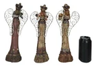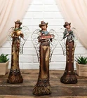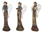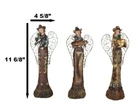 • These Cowgirl Angels each measures about 11.75" tall, 4.5" wide and 3" deep approximately. It weighs about 2.5 pounds. • These Cowgirl Angel Figurines are made of high quality designer resin, individually handpainted and polished. Because each piece is partially hand crafted, color tone may vary from pictures. • Our colorful Cowgirl Angel sculptures will create a beautiful inspirational focal point in any niche that you place them in. They are depicted in cowgirl hats and long western dresses. Each angel holds a unique article; a Cross, a plank sign that says Friend and finally a heart shaped plaque that says Family. • Props in photos are not included with the items. This listing comes as a pack of 3 angels. Ebros Set Of 3 Western Cowgirl Angels With Family Heart Cross Friend Sign Figurines Video will open in a new window Using the mobile app? Copy this link into your browser: