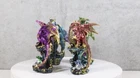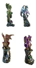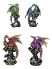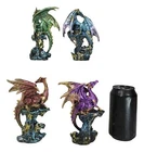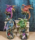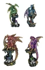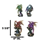 • These Dragons Perching On Rock Towers Figurines are made of high quality polyresin, hand painted and polished individually. • These Dragons Perching On Rock Towers Figurines each measures approximately 5.75" tall, 4" wide and 2.75" deep. The set weighs about 1.75 pounds. • Transform your space into a realm of myth and magic with our Set of 4 Metallic Colorful Dragons Perching on Rock Towers Figurines. Crafted with intricate detail and vibrant colors, each figurine depicts a majestic dragon perched atop a rocky tower, ready to take flight into the imagination. With their shimmering metallic finishes and dynamic poses, these dragons bring a sense of wonder and enchantment to any room. • Props in photos are not included with the sculptures. This listing comes as a pack of 4 figurines.