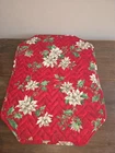 Set Of 4 Placemats Red W/White Poinsettias,Holly Leaves, & Berries Christmas
