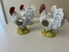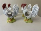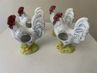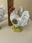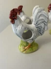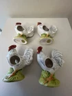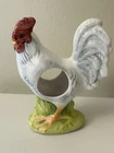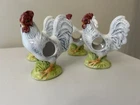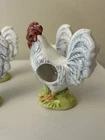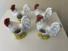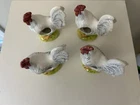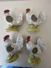 Set Of 4 Rooster Chicken Ceramic porcelain Napkin Ring Holders by Andrea Sadek Made in Philippines Good preowned condition- refer to pics