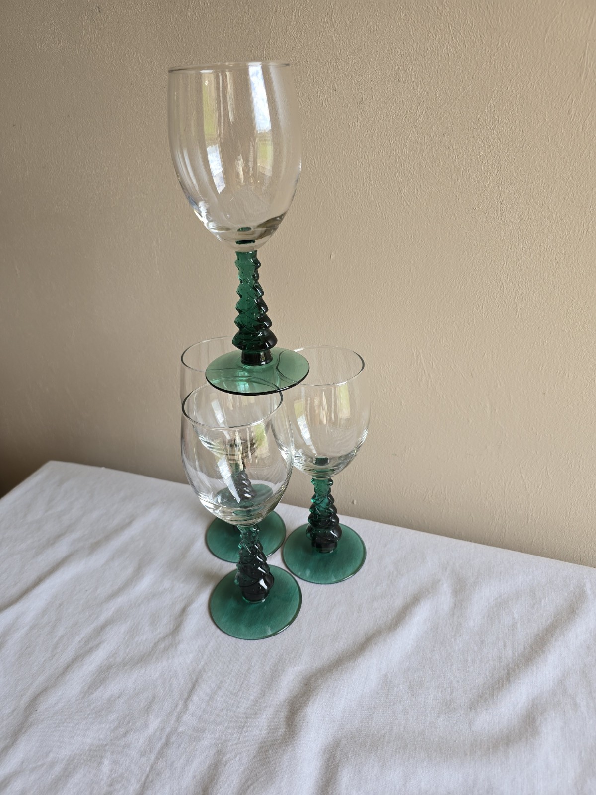Set Of 4 VTG Libbey Glass Co. Clear/Green Christmas Tree Stemmed Water Goblets
