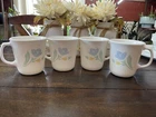 IN BRAND NEW CONDITION This set of four vintage Corelle Corning Ware Friendship coffee cups or mugs is a beautiful addition to any kitchen. Featuring a blue floral pattern on round glass material, these mugs are perfect for any occasion, especially for sharing a cup of tea with friends. Crafted in the 1980s, these mugs have a vintage charm and are a great find for collectors. The brand, Corelle, is well-known for its quality products, and these mugs are no exception. Whether you are a fan of vintage items or simply looking for a unique addition to your kitchen, these mugs are sure to impress.