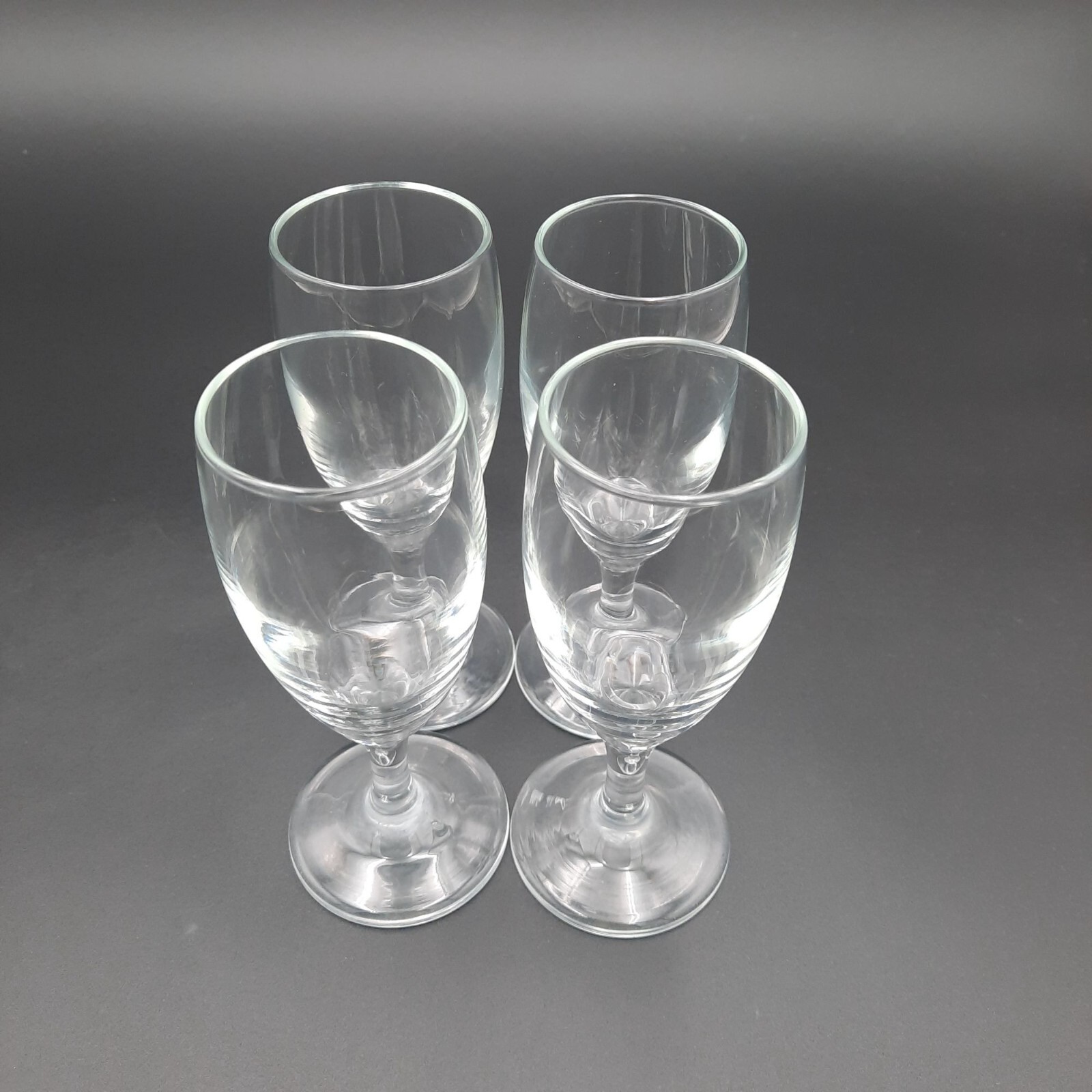 This set of four vintage clear wine glasses exudes a timeless elegance, perfect for those who appreciate the charm of yesteryears. Their classic design and sturdy build offer both aesthetic appeal and functional use, making them a cherished addition to any glassware collection. • Set of 4 glasses • Clear glass material • Classic vintage design • Stemmed base for stability • Ideal for wine or other beverages height 5.75 inches
