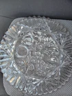 This vintage Federal Glass serving platter features the Pioneer Pattern with a beautiful fruit design. The platter measures 11 inches and is made of clear, cut glass. It is an original vintage piece from the 1940-1973 era, and is in excellent condition. The platter comes from the United States and is a part of a set of two. It is a round shape and is suitable for hand wash only. The platter is an original vintage piece and is a great addition to any collection.