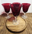 This set of 4 vintage Home Essentials Ruby Red Blown Glass Water Goblets stands at 7.25 inches tall and has a capacity of 14oz each. The round goblets are made of blown glass with a glossy finish and a ruby red color, adding a touch of elegance to any table setting. Hand wash only to preserve the decorative features of these vintage pieces, perfect for serving water or other beverages during special occasions or everyday use.