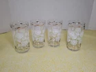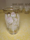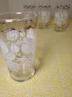 THANK YOU FOR VISITING OUR STORE. WE SHIP 6 DAYS A WEEK (UNLESS THERE IS A FEDERAL HOLIDAY). MOST ITEMS WILL SHIP IN A STURDY BOX AS NEEDED. PLEASE FEEL FREE TO REACH OUT IF YOU HAVE ANY QUESTIONS. WE WILL COMBINE SHIPPING WHEN AVAILABLE. Add a touch of Mid-Century Modern charm to your drinkware collection with this set of four vintage Libbey glass tumblers. Featuring a beautiful white rose leaf design with gold ribbon detailing, these glasses are perfect for any occasion from birthdays to anniversaries. With a capacity of 10-15 oz., they are ideal for both casual and formal occasions. Crafted in Ohio in 1960, these glasses are a true vintage original. The round shape, etched and decorated features, and glossy finish make them a stunning addition to any bar or kitchen. Hand wash only and measuring 6.5 inches in height, these glasses are a must-have for any collector of art glass.
