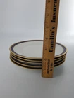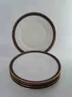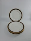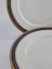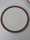 This set of five UC Limoges France salad plates is a beautiful addition to any dinnerware collection. The plates measure 7¼ inches in diameter and feature a stunning blue and gold rim design. Crafted from porcelain, these plates are durable and delicate. The plates are perfect for serving salads or any other dish and come in a set of five. They are vintage and made in France, adding a touch of elegance to your dining experience. There is some gold loss commensurate with age. See pictures. The plate set weigh 2 lb 5.9 oz and are perfect for any occasion. Add these exquisite plates to your collection today!