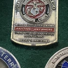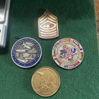 This set of four challenge coins features designs from the US Marine Corps and NATO. Each coin is a unique piece of militaria that showcases the intricate details of military history. The coins are perfect for collectors or anyone who appreciates the artistry and symbolism of challenge coins. The coins are authentic and original, making them a valuable addition to any collection. The set includes a variety of designs that will appeal to anyone interested in militaria. Whether you're a collector or just someone looking for a unique piece of history, this set of challenge coins is sure to impress. These coins do have wear on them so please review the pictures before purchasing and see if they’re suitable for your collection.