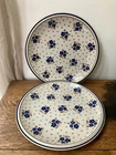 Set of two lovely Newcor Stonrware dinner plates, in Country Field pattern. Beige background with royal blue flowers and brown accents. Measures 10.5” wide. In excellent condition, no chips or cracks. Some very minor surface scuffing from what appears to be cutting with a dinner knife. Not even visible in photographs but I thought I should mention it!