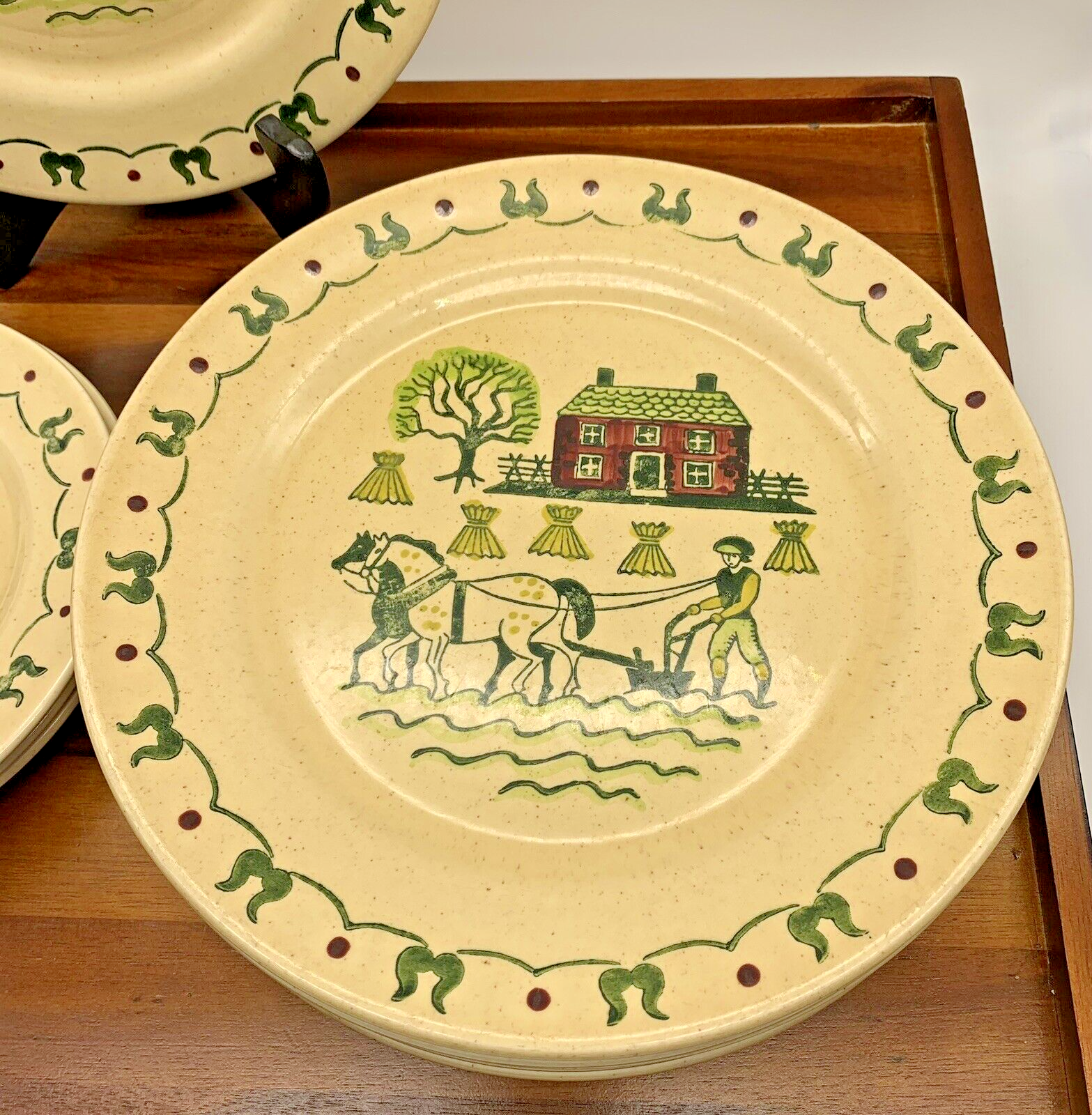 Set of 10 Metlox Poppytrail Vernon Homestead Provincial 10" and 7.5" Plates READ The 3 Salad Plates 7.5" are in great overall vintage preowned condition, very little wear can even be seen on these plates. The 7 10" dinner plates have been heavily used, they all show signs of routine use. A few of them have little chips on the edge (pictured), nothing major but wanted to point out. Pricing accordingly for a collector that could use these daily without fear of scratching them. Please zoom in on photos for a better view of the item's condition. We do our absolute best to research all items we sell. If you ever have questions, please reach out to me! We will always package items securely and with care. Thank you for viewing and please visit our store for more awesome vintage goodies!