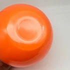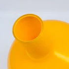 Set of 2 Crate and Barrel Encased Glass Vases Yellow 8.25" T and Orange 9.5" T The vases feature a glossy finish and bright yellow and orange colors. Yellow vase measures 8.25" T and 5.5" Diameter. Orange vase measures 9.5" T and 6.5" Diameter. Yellow vase has a 1 3/8" opening at the top. Orange vase has a 1 5/8" opening at the top. Used but in very good condition. Yellow vase has a small black spot inside the glass. The orange vase has a few small scratches that are hard to see because of the glossy finish and bright color. See photos for details.