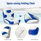 Set of 2 Folding Low Back Fishing Boat Padded Marine Large Seats W/ Steel Screws ● 2-Pack Boat Chair with Large Seat: There are 2 fishing boat chairs in one package, allowing pairs to use together. What's more, this comfortable chair has a large seat, 16" x 15.5", providing luxury using experience on the shaky boat. This sturdy boat seat can load up to 250 lbs, ensuring high stability and excellent sturdiness. ● Comfortable Sitting Experience Provided: This boat chair is fully filled with high elastic foam, providing cozy sitting experience. And the curved back provides strong support to reduce sedentariness pressure. Besides, the armless design offers you flexible sitting options. ● Weather-Resistant Material for Outdoor Use: Covered by premium PVC and PP, this fishing boat chair can withstand long-term rigors of a marine environment. Weather resistant surface ensures long-term outdoor use, and the tight stitching craftsmanship showcases lasting durability. ● Folding Design for Better Storage: This fold-down boat chair creates more space when it is not in use. And the long fixation strap is designed for space-saving storage, also good for prolonging the service life. In addition, the durable metal hinge ensures smooth flipping down and up. ● Simple Installation Steps Required: Included with stainless steel screws, this yacht seat can be simply assembled on the stand (not included) by following the detailed instruction. And the chair fits standard 5" x 5" mounting bolt pattern, any standard 4-bolt swivel or pedestal will be fine. If you have any questions, please feel free to contact us. Color: Blue Material: PVC, PP, Foam Product dimension: 19.5" x 16.5" x 20.5" (L x W x H) Seat dimension: 16" x 15.5" (L x W) Backrest dimension: 16" x 15" (L x W) Thickness of seat foam: 4.3" Load capacity: 250 lbs (per seat) Net weight (2 Pack): 22 lbs