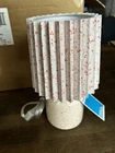 This set of 2 mini printed ceramic base table lamps with printed pleated shades features a warm white and pink drop design, perfect for adding a touch of traditional style to any room. The energy-efficient corded lamps have a ceramic base and come with lamp shades included. With a cone-shaped shade and a voltage of 110 V, these table lamps are ideal for use in bedrooms, living rooms, home offices, dens, and dining rooms. The printed finish and warm color temperature make them a cozy and stylish addition to any space. These are brand new in the original box and have never been opened. They have their original tags as well as their original outlet cover and are still zip tied up exactly as they would be if they were brand new. These are a cute pair that assured to be a wonderful addition to any room. Please zoom in on photos and please ask any questions you might have before purchasing. Payment is due a time of purchase, all items are sold as is and all sales are final. No returns accepted. These are not being sold separately and are only being sold as a pair.