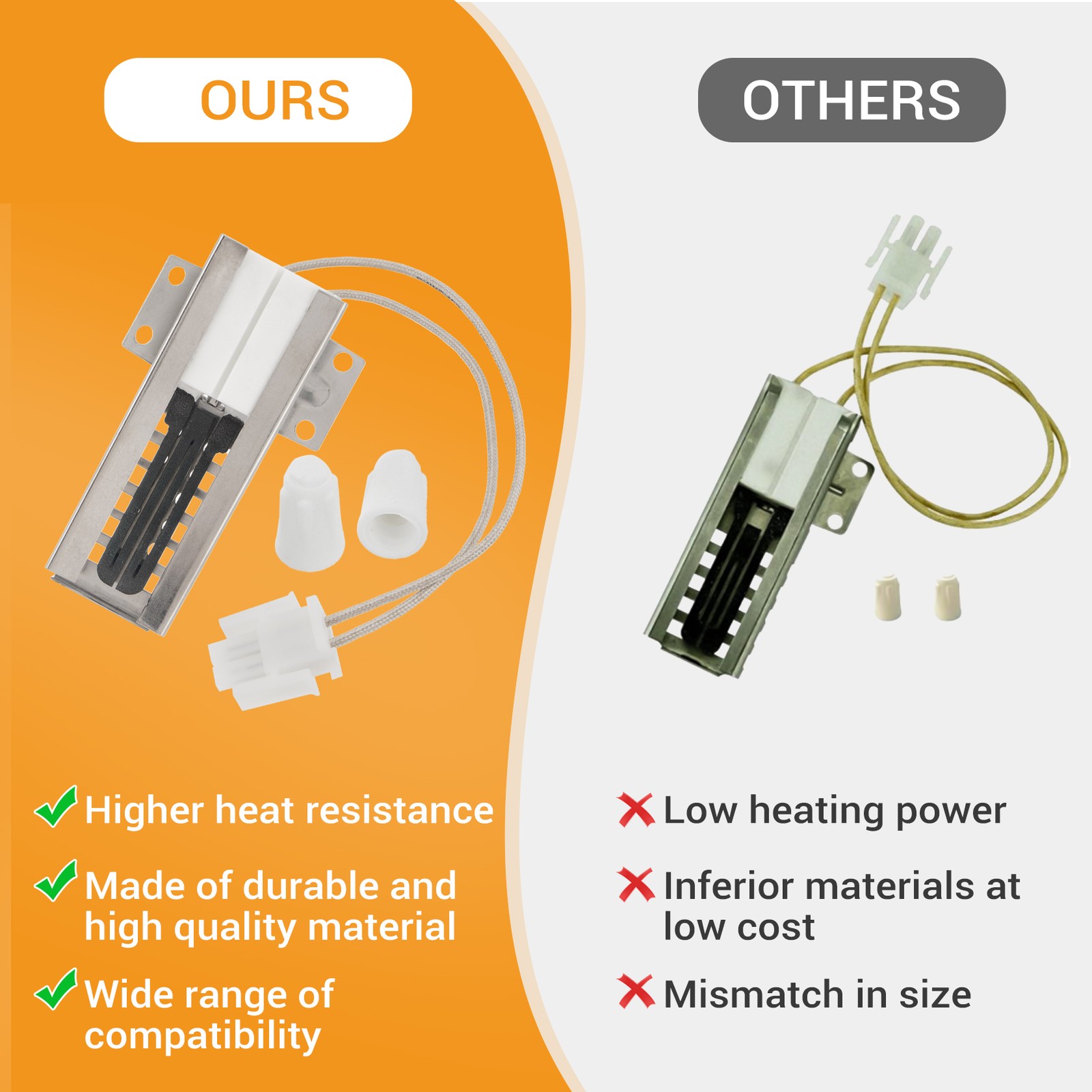 WB13K21 Oven Igniter Replacement for G-E Sam-sung Hot-point Ken-more Gas Range Oven This high-quality WB13K21 flat igniter is designed as a direct replacement for your faulty or worn-out oven igniter. It is engineered to meet or exceed original equipment standards, ensuring reliable performance and easy installation. Compatible with a range of popular brands and models, this igniter is an ideal solution for restoring your oven's proper function. Feature: Direct replacement for the WB13K21 and other compatible part numbers. Manufactured from high-quality materials for enhanced durability and consistent performance. Features a 2-prong Molex plug for secure and correct electrical connection. Automotiveparts_aa Best choice of motor parts Set of 2 Oven Igniter Replacement for GE Samsung Hotpoint Kenmore Gas Range New WB13K21 Oven Igniter Replacement for G-E Sam-sung Hot-point Ken-more Gas Range Oven This high-quality WB13K21 flat igniter is designed as a direct replacement for your faulty or worn-out oven igniter. It is engineered to meet or exceed original equipment standards, ensuring reliable performance and easy installation. Compatible with a range of popular brands and models, this igniter is an ideal solution for restoring your oven's proper function. Feature: Direct replacement for the WB13K21 and other compatible part numbers. Manufactured from high-quality materials for enhanced durability and consistent performance. Features a 2-prong Molex plug for secure and correct electrical connection. Includes 2 porcelain wire nuts, which are highly heat-resistant for safe installation. The 8-inch long wire leads provide flexibility for easy installation. Designed with a 1.5-inch ceramic bar and a protective metal shield for longevity. Replacement for numbers: 501A,229C5216P001,EBZ37171601, WB13K21 ,WB13T10045,AP2020569,AP3202322,OEM8082278,PS231280,PS952863 Compatible Brands/Models: General Electric, Kenmore, Hotpoint, Surface Ignitor Corp Package Includes: 2x WB13K21 Oven Igniter Our Service Commitment Fast Shipping: We process and ship your order within 1 business day to get your part to you quickly. Multiple US Warehouses: For faster delivery times, we ship from several locations across the country, including warehouses in CA, TX, and KY. 60-Day Hassle-Free Returns: We offer a full 60-day return policy for a completely risk-free purchase. Lifetime Warranty: We guarantee the quality and durability of our product with a lifetime warranty for your long-term peace of mind. Certificates of our product: Our Factory: Item Specifics Brand CARBOLE Type Igniter Set Includes Igniter Suitable For Gas Oven Number of Items in Set 2 Color White Installation DIY Compatible Brand For Frigidaire Compatible Model WB13K21 Model WB13K21 Model Number DS020KX Features Easy to install,long lasting and durable Power Source Natural Gas Material Ceramic Manufacturer Warranty Lifetime Replacement for number 1 501A 229C5216P001 EBZ37171601 WB13K21 Replacement for number 2 WB13T10045 AP2020569 AP3202322 Replacement for number 3 8082278 PS231280 PS952863 Payment Returns Automotiveparts_aa Best choice of motor parts DESCRIPTION PAYMENT SHIPPING RETURN POLICY CONTACT US Shop Category Store Home Ignition Coils ◈ Ignition Coils Series Automotive Tools & Supplies Exterior Parts & Accessories Home&Garden Home Major Appliance Business & Industrial Car & Truck Parts & Accessorie Motorcycle & Scooter Parts Boat Parts Other Hot Item 4 Pack Range Burner Receptacle Block Kit Universal 330031 5303935058 WB17T10006 USD 13.50 W10383615 Refrigerator Thermistor With Clip Fits for Whirlpool WPW10383615VP New USD 10.99 2 Pack Washer Door/Drawer Pedestal Latch 137006200 For Electrolux & Frigidaire USD 9.99 4X Primer Fuel Bulb Pump For Poulan Ryobi Homelite Toro Craftsman Blower Trimmer USD 6.99 3x For Walbro Poulan Craftsman Chainsaw Primer Bulb 530071835 530047213 188-513 USD 8.22 Excellent Delivery Help & Info Payment Policy Shipping Policy Return Policy FAQ About Us New List Item Set of 3 Oven Igniters Replacement for GE Samsung Hotpoint Kenmore Gas Range US USD 54.99 W11217817 4Pack Washer Suspension Rod Kit for Whirlpool Maytag Kenmore Amana New USD 35.99 Ignitor Replacement For Coleman Evcon S1-32541021000 1474-052 1471-052P 14710521 USD 20.99 80CFM Bathroom Fan Motor Replacement for Broan Nutone 678-G/2678F-A S97015162 US USD 63.95 WB13K21 2XOven Igniter Replacement for G-E Sam-sung Hot-point Ken-more Gas Range USD 36.99 Set of 2 Oven Igniter Replacement for GE Samsung Hotpoint Kenmore Gas Range New WB13K21 Oven Igniter Replacement for G-E Sam-sung Hot-point Ken-more Gas Range Oven This high-quality WB13K21 flat igniter is designed as a direct replacement for your faulty or worn-out oven igniter. It is engineered to meet or exceed original equipment standards, ensuring reliable performance and easy installation. Compatible with a range of popular brands and models, this igniter is an ideal solution for restoring your oven's proper function. Feature: Direct replacement for the WB13K21 and other compatible part numbers. Manufactured from high-quality materials for enhanced durability and consistent performance. Features a 2-prong Molex plug for secure and correct electrical connection. Includes 2 porcelain wire nuts, which are highly heat-resistant for safe installation. The 8-inch long wire leads provide flexibility for easy installation. Designed with a 1.5-inch ceramic bar and a protective metal shield for longevity. Replacement for numbers: 501A,229C5216P001,EBZ37171601, WB13K21 ,WB13T10045,AP2020569,AP3202322,OEM8082278,PS231280,PS952863 Compatible Brands/Models: General Electric, Kenmore, Hotpoint, Surface Ignitor Corp Package Includes: 2x WB13K21 Oven Igniter Our Service Commitment Fast Shipping: We process and ship your order within 1 business day to get your part to you quickly. Multiple US Warehouses: For faster delivery times, we ship from several locations across the country, including warehouses in CA, TX, and KY. 60-D