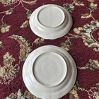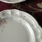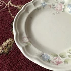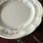 This set of 2 Pfaltzgraff Tea Rose dessert and salad plates is a great addition to any table. The plates measure 7.25" and feature a beautiful floral design in ivory, pink, green, and blue. Made of stoneware, these plates are durable and can be put in the dishwasher or microwave without any worries. The set includes eight salad plates, but can also be used for dessert or as a set. The brand is Pfaltzgraff, and the production style is art pottery. These plates are perfect for all occasions and will add a touch of elegance to any meal. Good used condition, no chips or cracks, normal wear.
