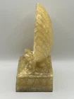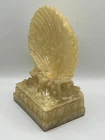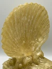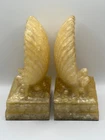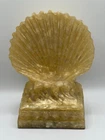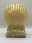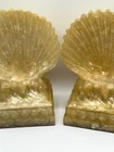 Set of 2 bookends Shell shaped on the base. Base measures 4.5x3.5 in. Height 8 in. Creamy/yellowish color. Nautical theme home decor display. Excellent condition. No chips. Was purchased from Aaron Brothers. One bookend is slightly darker than the other (see photos)