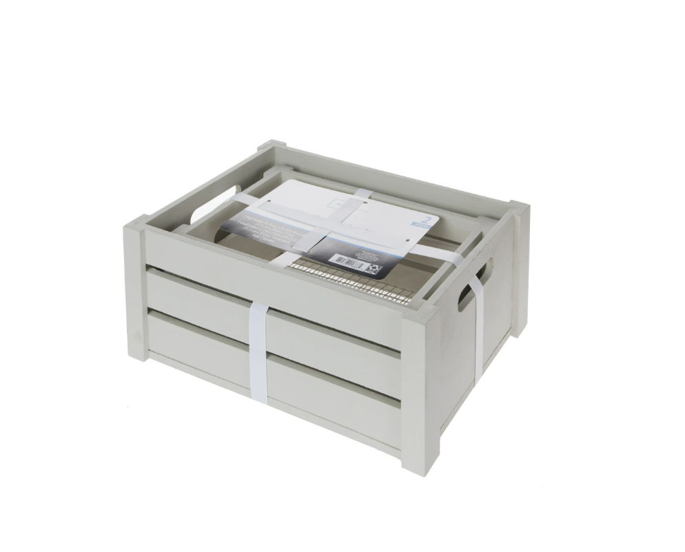 Product details Add both function and charm to your home with the Mainstays Gray Wood and Wire Storage Basket Set with Handles. This versatile set includes one large and one small basket, each designed with convenient cut-out handles for easy carrying. Crafted from durable wood with a sturdy wire bottom, these baskets are perfect for storing and organizing smaller household items while adding a touch of rustic style to your space. Because each piece is handmade, slight variations and moderate inconsistencies may occur, and the actual color may differ slightly from the images shown. The Mainstays Gray Wood and Wire Storage Basket Set with Handles offers a practical and decorative solution for everyday storage needs. Mainstays Gray Wood and Wire Storage Basket Set with Handles, Set of 2 Set includes 1 large and 1 small basket Cut-out handles make carrying easy Durable wood construction with sturdy wire bottom Great for storing and organizing smaller items Handmade design may have slight variations in color and finish More details Basket type Decorative Baskets Color Gray Decor style Farmhouse Material Wire, Wood Size descriptor Small Handle material Wire Count per pack 2 Handle style Cut-Out Has lid N Shape Rectangle Dimensions 14.76 x 11.41 x 6.69 Inches Count 2 Brand Mainstays Shipping • Free Standard Shipping on all items. • All orders are shipped out via UPS, Fedex, USPS or LTL. • Transit time is 2-7 business days varying on customer’s location to fulfillment center. • Tracking numbers will be automatically updated once order is shipped. • We only ship to the Lower 48 States, no current shipping to Hawaii, Alaska, Puerto Rico, nor Guam. • We do not ship to FPO, APO or PO