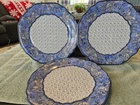 This set includes 3 scalloped salad plates by Certified International from the Jackie Von Tobel collection. The plates feature a floral pattern in blue and white, made of stoneware in a microwave and dishwasher-safe design. They were produced in China in the 2000s, showcasing a printed backstamp. There is the tiniest little chips on one seen in pictures. I have several listings of these type of plates so please check them out. While I'm just getting started listing on Ebay and learning how things work now, I am not completely new to the Ebay. 18 years ago I was a single Mom of 2 that made our living selling on Ebay. Fast forward and a few more kids and wonderful husband I have decided to try to earn a few extra bucks and give it a whirl. I'm anxious to build a positive feedback score with lots of happy customers. I do my very very best to research and list my items accordingly. I am not a professional antiquer or even close to it. Please take the time to ask questions about an item or let me know if you feel I have not represented something accurately.
