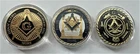 Freemasonry Challenge Coin Set of 3 Front: Freemason Square and Compasses (with G) Insignia with blue enamel background Back: Gold Square and Compasses with blue background Type: Plated Zinc Alloy CNC machined Challenge Coin Finish: Bright Gold Plate and Soft Enamel (Tough to photograph with glare but this is a spectacular coin uncased) Edge: Smooth Rounded Reeded Edge Size: 1 9/16ths inch round alloy coin Encapsulated for protection This is a set of 3 Freemason Coins we have. We have these coins individually as well We also carry Knights Templar PVC patches. Check out our other Presidential & CIA Coins & Military Challenge Coins & Patches. We're not happy until you're happy! If we didn't earn a Positive Feedback or all 5 Star ratings, please tell us asap so we can earn your trust. We can control a smile; we can't control manufacturer's defects, slow post office trucks, the weather or porch pirates. If something is wrong, let us know and we'll make it right. We gladly accept paypal. If you would pay for your auction within 3 days or immediately for a Buy It Now, we would appreciate it!