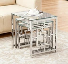 Modern Nesting Coffee Table Set – Silver Stainless Steel Frame & Clear Glass Tops (Set of 3) RRP £135 Elegant and space-saving 3-piece nesting table set, perfect for living rooms, lounges, or offices. • Design: Sleek square tables with geometric silver stainless steel frames • Top: Clear tempered glass – easy to clean and visually light • Functionality: Use together or separately – ideal as coffee tables, side tables, or sofa ends • Condition: Brand new, boxed with assembly instructions Stylish and practical – adds a contemporary touch to any interior.