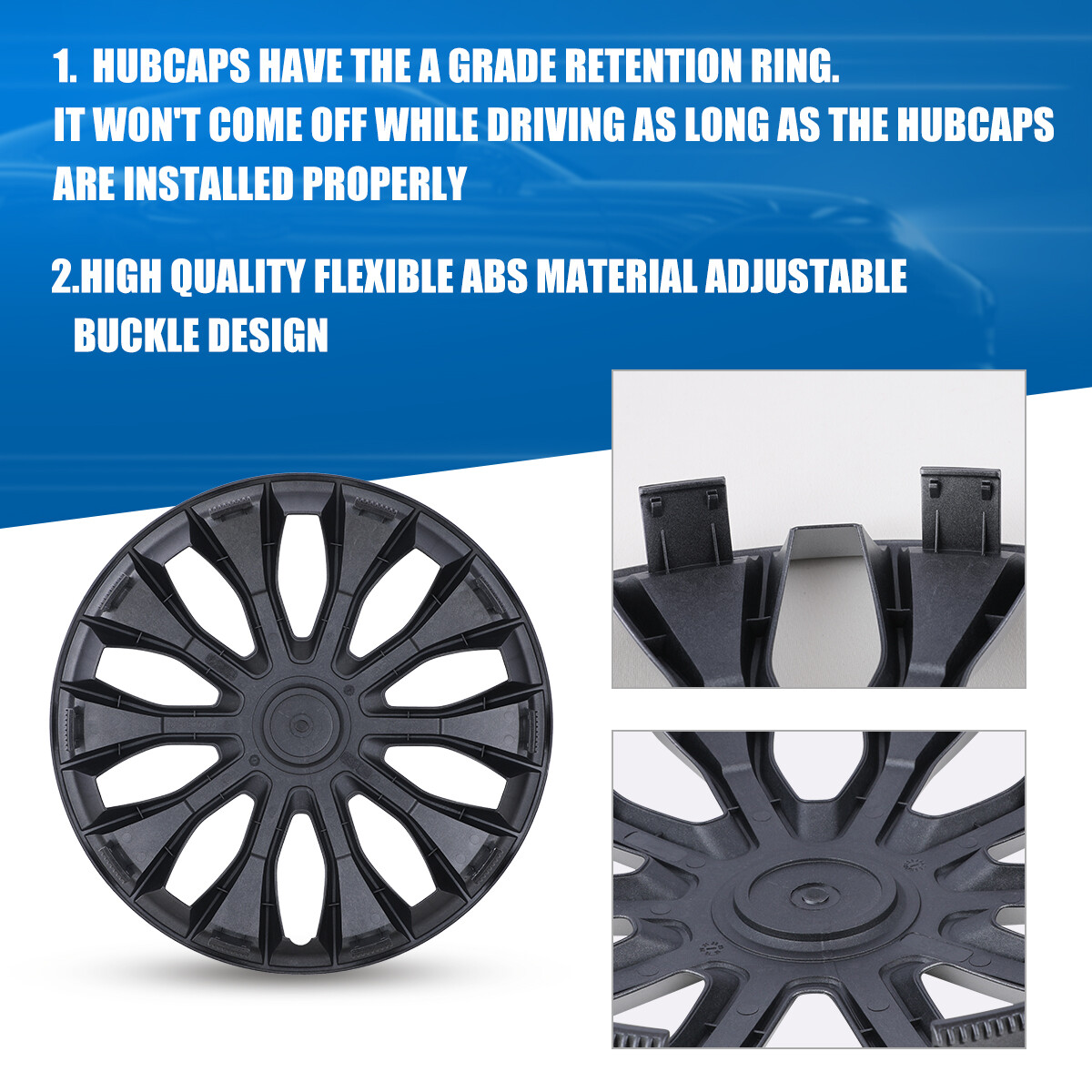 $ 23.764PCS 14" Snap-On Black Matte ABS Hubcaps for Car & Truck Wheels