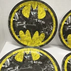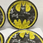 Add some super-hero flair to your dining experience with this four-piece Batman plate set. Each plate features a round shape with a diameter of 10 inches, showcasing the iconic Batman character in a comic book style. The plates are made of durable and shiny melamine material, and they are dishwasher safe for easy cleaning. Perfect for all occasions, this novelty plate set is a must-have for any Batman fan. Whether you're hosting a dinner party or just enjoying a meal with your family, these plates will add a fun and exciting touch to your dining table. Get your hands on this officially licensed plate set from Silver Buffalo LLC New York, and join the crusade against boring tableware.