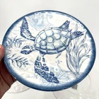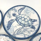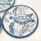 Certified International Melamine Turtle Lunch Plates 9" Blue White Beachy Set of 4 NEW Coastal Nautical Brand new with original tags on bottom, see all pictures for views. Can be used as lunch/dinner plates or as salad/dessert. Can be washed in dishwasher top shelf. Ships out same day or next open postal day. Thank you for your purchase, we appreciate you!