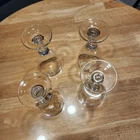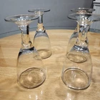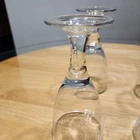 This set of four stemmed clear wine glasses is perfect for any occasion. The glasses are 7 inches tall and have a diameter of 3.5 inches. Made of high-quality glass, they are sure to impress your guests. The goblets are ideal for water, wine, and other beverages. They are suitable for adults and are a great addition to your glassware collection. The glasses are vintage-style and will add a touch of elegance to your table setting. One of the glasses has a couple of small scratches, see photo when i am holding it.