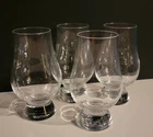 Elevate your drinking experience with this set of four Stolzle Crystal Glencairn Whiskey glasses. Crafted from high-quality clear glass, these glasses are designed to enhance the aroma and taste of your Glencairn whiskey. The glasses are etched with the Glencairn Brand, and have a capacity of 6 oz. and measure 4.5" tall . The set includes four glasses, all are in excellent pre-owned condition. making it perfect for serving your favorite whiskey. Shipping by USPS Mail services or alternate shipping services.The product is a set of 4 Glencairn Whiskey Crystal Nosing Glasses, featuring a tapered mouth design with a capacity of 5.7 oz. These whiskey glasses are made of clear glass with an etched brand logo, perfect for all occasions and suitable for adults. The glasses are round in shape, have a height of 4.5 inches, and are designed for whiskey enthusiasts who appreciate the aromas their favorite spirits. The tapering mouth allows ease of drinking not associated with traditional nosing glasses. The wide bowl allows the fullest appreciation of the whiskey and the thistle style base is designed for comfort. Designed in 2006, this design was awarded the Queen 's Award for innovation. The first real definitive glass for whiskey. Made in the United Kingdom, this set of whiskey glasses adds a touch of sophistication to any home bar or dining experience. Each glass is in excellent pre-owned condition. This set of 4 Glencairn Whiskey Crystal Nosing Glasses features a tapered mouth and a capacity of 6 oz, making it perfect for enjoying whiskey with a group of friends or family. The clear glassware is etched with the brand's logo and is designed with a round shape, ideal for all occasions. Each glass stands at 4.5 inches tall and has a width of 2.3 inches, all made in the United Kingdom by the reputable brand Glencairn. Perfect for adult use and adding a touch of sophistication to your whiskey drinking experience. Shipping by USPS Mail services or alternate shipping services.